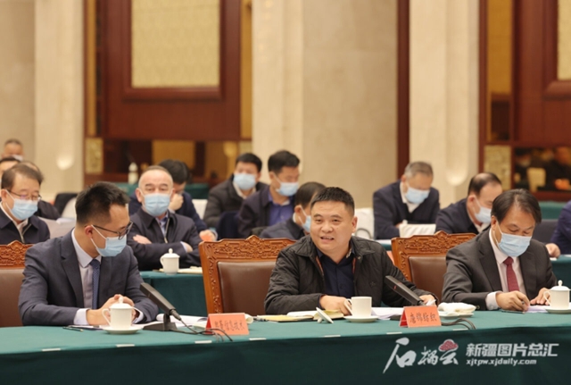 新疆唐锦纺织有限公司董事长张文茂发言。石榴云/新疆日报记者崔志坚摄