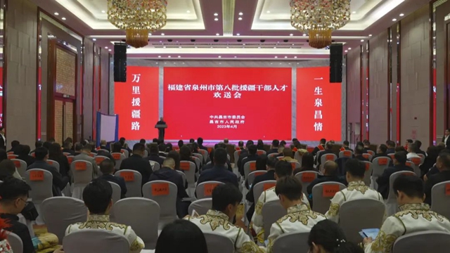 4月17日,昌吉市举行福建省泉州市第八批援疆干部人才欢送会,总结第八批援疆干部三年来倾情援助、默默耕耘的硕果,向他们表达诚挚的感谢,送上衷心的祝福。