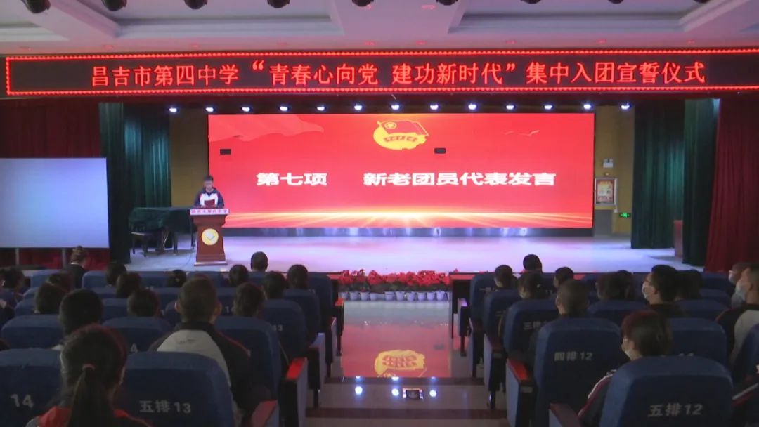 昌吉市第四中学高二6班新团员代表伊晓宇:“今天加入共青团,对我来说并不只代表着荣誉,更是一种责任。我一定要珍惜团员的光荣称号,时刻保持团员的先进性,努力学习、争当模范、奋斗青春!”
