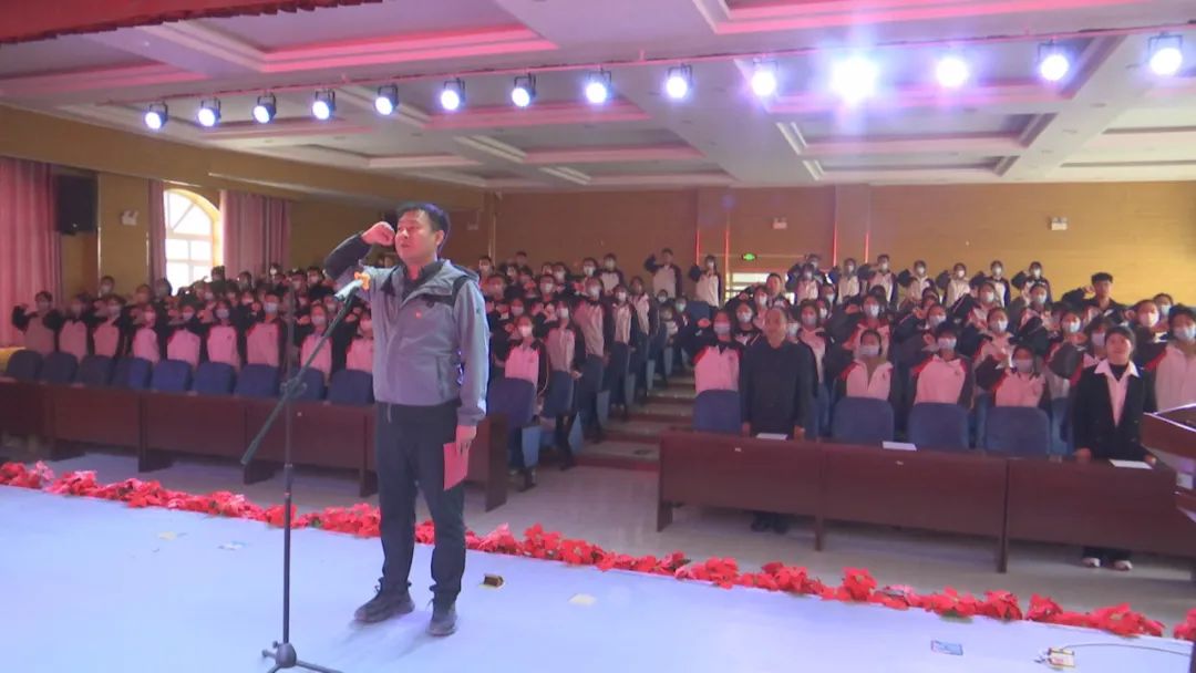 入团仪式在庄严的国歌声中拉开序幕。仪式上,宣读了62名新团员名单,为新团员代表佩戴了团徽、颁发了团员证,全体团员代表右手握拳,面向鲜红的团旗庄严宣誓,洪亮的宣誓声振奋人心。随后,新老团员相继发言,纷纷表示要坚定理想信念、努力学习,争做有理想、敢担当、能吃苦、肯奋斗的时代先锋。