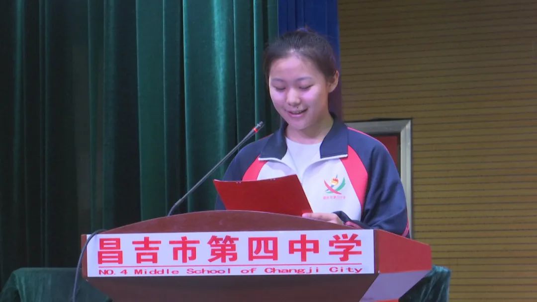 昌吉市第四中学高三2班老团员代表党金艳:“我们青年一代传承'五四'精神,就是要自觉将爱国情、强国志、报国行融入生活中。做为一名老团员,我会起好模范带头作用,和新团员们一起,发挥各自的特长,互帮互助,努力学习,严格地要求自己,为团旗增辉增色。”