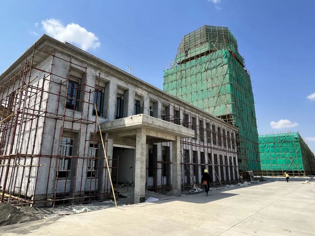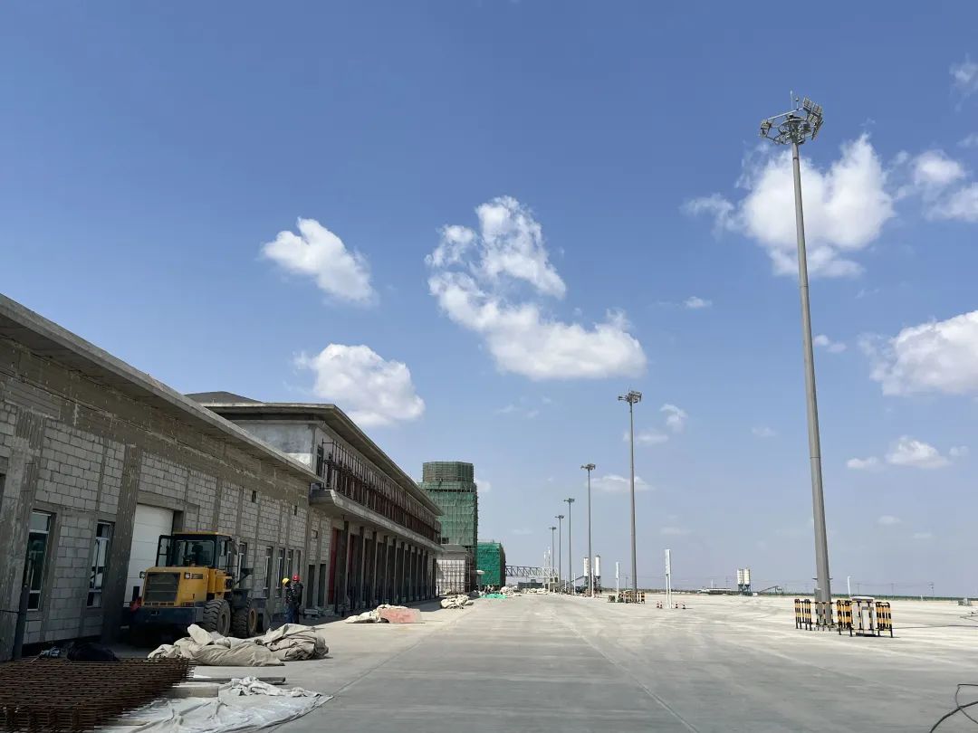 5月8日,记者在奇台江布拉克机场建设现场看到,430多名工人正在对航站区各单体内外装修、设备安装、中心广场绿化等加紧施工。