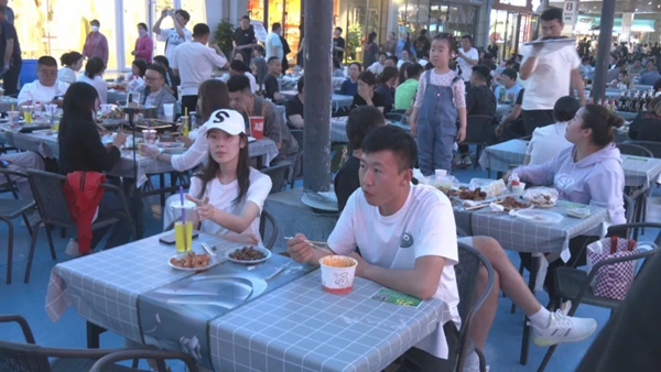 昌吉学院大学生夏尔巴提说,我们今天喝了羊杂汤,吃了烧烤,也吃了凉面,很好的烟火气,氛围特别好。