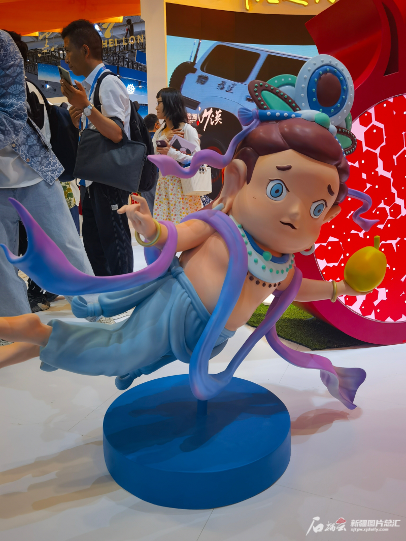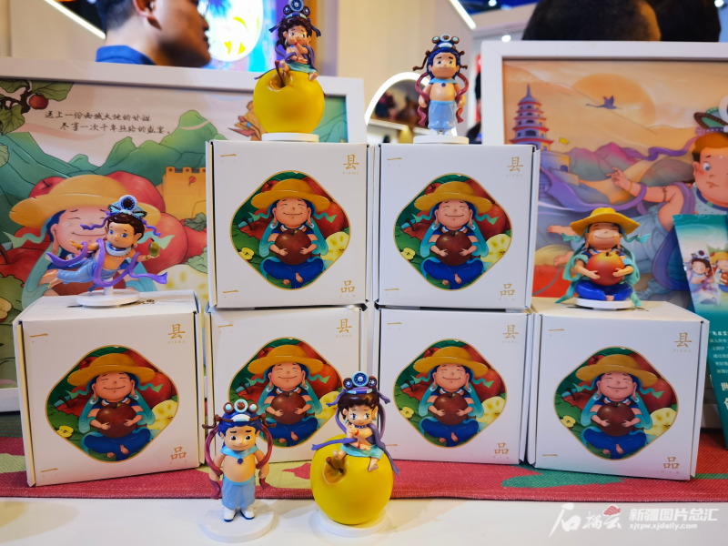“这个人偶形象很特别,特征很突出,一下子就能让人联想到壁画,我在新疆旅游时去过克孜尔石窟、柏孜克里克千佛洞,记忆很深刻。”来自江西的参观者周艺婷说,这个形象创意确实为产品加分不少。