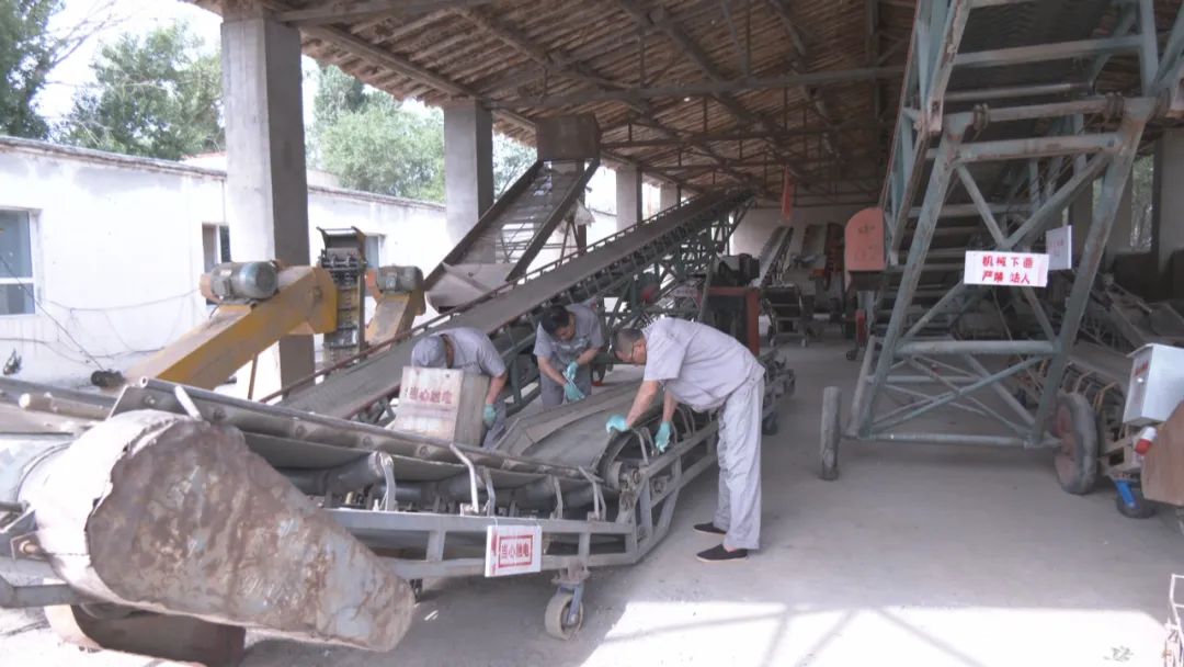 一大早,记者在位于二六工镇的昌粮集团昌吉国家粮食储备库二六工粮站看到,工作人员正忙着对库房内的粮食传送机、筛选机器、组合式圆筒清理筛选机器进行检修。