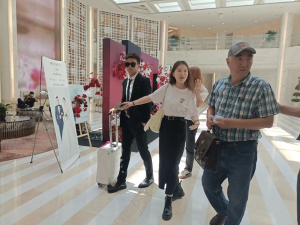 7月15日,受邀外国专家学者(右1)陆续报到,入住昌吉园林宾馆。记者刘茜 摄