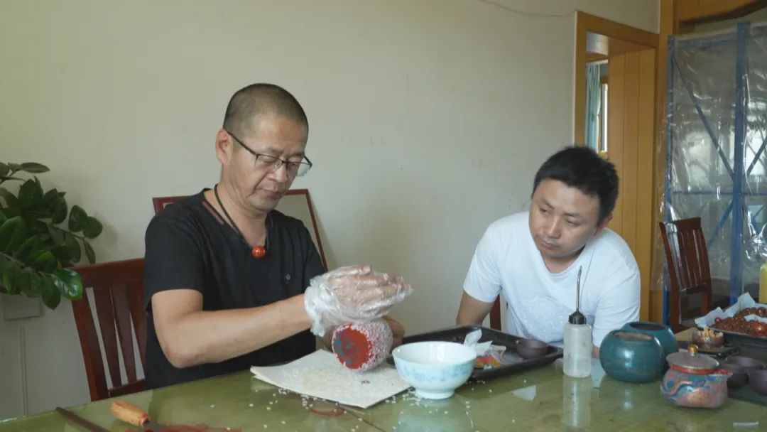 “阴花细缬珊瑚明,赪霞隐隐东方生。”诗人袁枚曾这样赞美漆器。昌吉市第六批市级非物质文化遗产名录项目大漆工艺代表性传承人张镇藩今年48岁,曾干过工程机械、卖过玉石、做过工艺品,一次偶然的机会他接触到大漆,便被深深吸引,并沉迷此道。于是他购买相关书籍、观看教学视频开始了自学,在大漆工艺里找到了自己的“漆”彩人生。今年4月,张镇藩在北京南路街道油运基地社区的帮助下,开设了工作室宣传推广大漆工艺品,让更多年轻人传承这项技艺,让大漆真正走进千家万户,走进人们的心里。