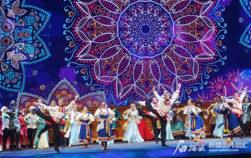 身着民族服饰的俄罗斯艺术家载歌载舞,倾情呈现了一场欢腾唯美的俄罗斯民族风情舞蹈秀;香港舞蹈团融合了武术招式的舞姿亦柔亦刚,尽显中国传统文化底蕴;龟兹舞者手持莲花灯翩翩起舞,婀娜灵动……