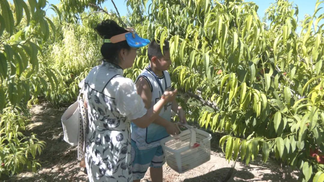 乌鲁木齐小朋友孙庆晖说,放暑假了,我和妈妈来摘桃子,这里的桃子又大又圆,甜甜的,我在采摘桃子的过程中感受到了劳动的乐趣。