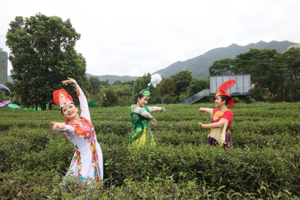 不管新疆的哪一个民族,歌、舞、乐都离不开生活。到了安溪,一定要去感受安溪的茶文化。演出前,演员们参观了安溪茶文化园,并且在茶园进行了歌舞演绎,让新疆歌舞与茶园来了一次美丽邂逅。