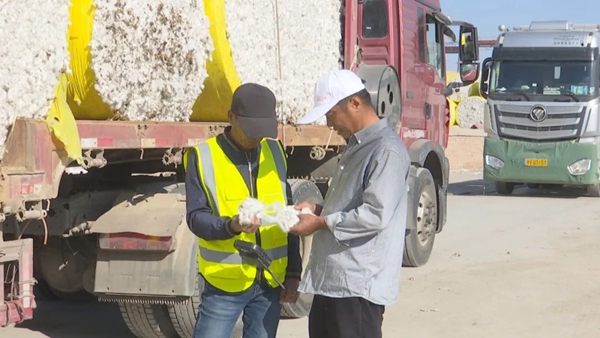 10月19日,记者在下巴湖棉花加工厂看到,前来交售棉花的车辆排起了长队。工作人员按照规章流程,对棉花进行抽样检验、过磅称重、卸车等。棉花种植户魏静今年种植了1400亩棉花,这些天他一直奔波在棉田和棉花加工厂,目前他种的棉花已交售完毕。