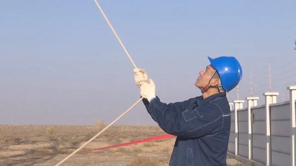 在位于昌吉市辖区的35千伏麦浪变电站,国网昌吉市供电公司配电运检班工作人员爬上28米高的35千伏梧麦线115号塔,对该线路进行了隐患排查和消缺。前几天,工作人员在巡检过程中发现115号塔引线断裂,有可能会造成变电站停电,公司立即安排工作人员停电检修。