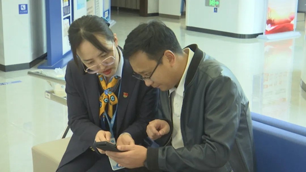 市民陈国龙因银行卡损坏需要更换新卡,通过手机提前预约服务,一到银行就办理了业务,很快就拿到新的银行卡。