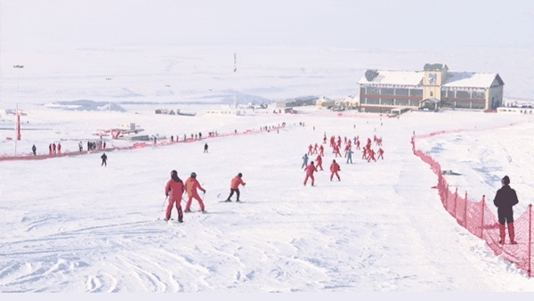 当天下午,记者在努尔加滑雪场看到,在通往雪道的魔毯前,滑雪爱好者排起了长队。大家“全副武装”,在教练的指导下,初学者小心翼翼地滑行,发烧友则不断变换动作,疾驰而下。