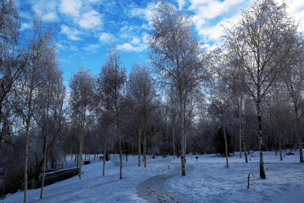 中央公园一步一景,雾凇错落有致,处处玉树琼枝。晨光中,望眼欲穿,美景如画,为冬日增添了独特神韵,使冬游的人们流连忘返。(昌吉市融媒体中心记者 刘华)