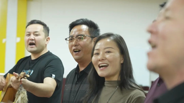 在昌吉市文化馆,自治区级“花儿(新疆花儿)”非物质文化遗产传承人马成和他的徒弟们正在排练歌曲《尕妹是牡丹花中王》。除了用“花儿”的传统唱法外,他们还将冬不拉演奏融入表演中,旋律优美、奔放,节奏自由、舒缓,让人心情愉悦。