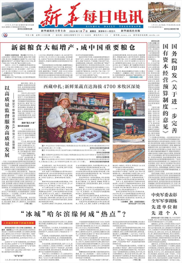 据介绍,粮油是新疆重点打造的八大重点产业集群之一。新疆提出,将进一步压实工作责任,发挥资源优势,推动粮食产量持续增长,打造好“西北粮仓”。(来源:新华社)