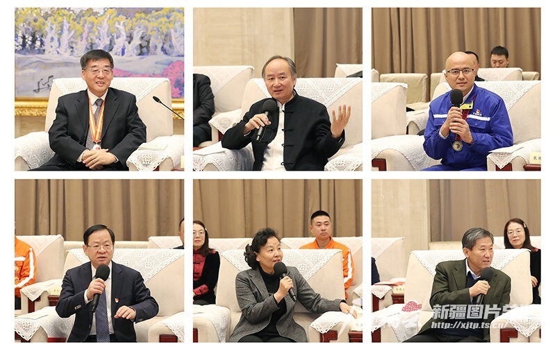 会见时,王维庆、刘亮程、张国云、马依彤、杨兆萍、郐振明先后发言(从左至右、从上至下)。石榴云/新疆日报记者 崔志坚 摄
