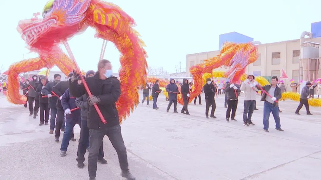 在佃坝镇社火排练现场,随着一阵鼓乐声响起,村民们手舞彩扇,腰系彩带,踏着欢乐喜庆的鼓点,热火朝天地排练着社火节目。现场四条“长龙”时而腾空跃起,时而蜿蜒低潜,时而翻滚盘旋;一时间,锣鼓声、喝彩声、欢笑声汇成一片。