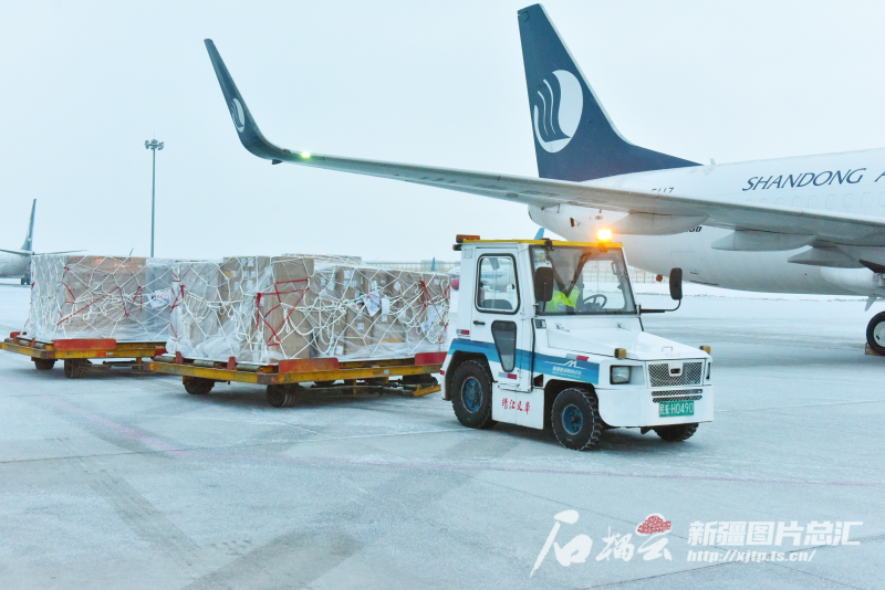 1月13日,新疆机场首家货运基地航空公司——山东航空执飞的乌鲁木齐—阿拉木图定期国际全货运航线成功首航。许昊鹏供图