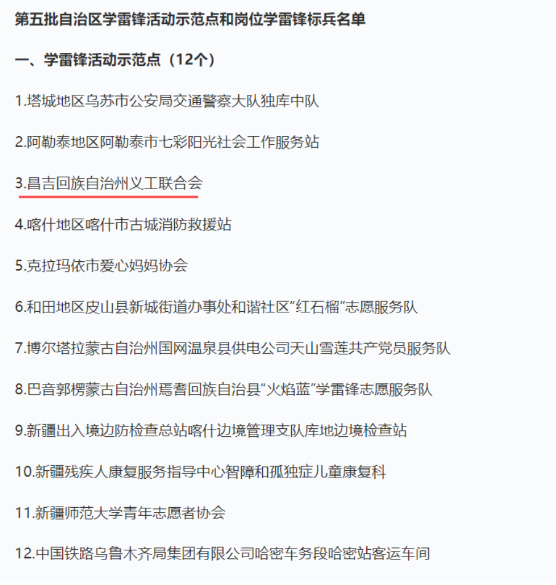 昌吉市榜上有名! 昌吉回族自治州义工联合会 被评为学雷锋活动示范点 昌吉回族自治州怡霏爱心公益团队队长李怡霏 被评为岗位学雷锋标兵