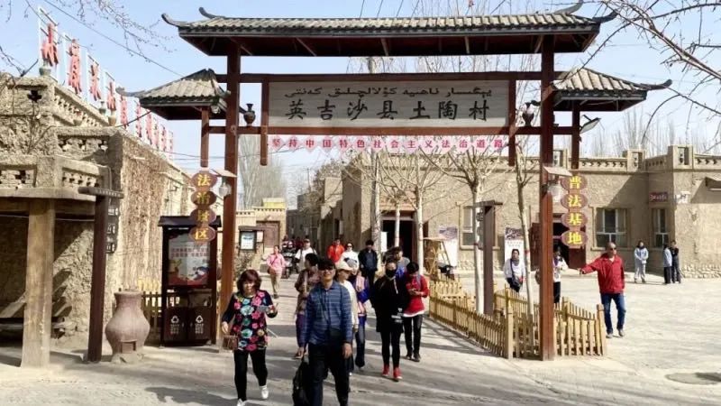 3月12日,广州游客在英吉沙县土陶村游玩。田亚莲摄