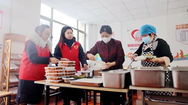 饭点刚到,昌吉市建国路街道明苑社区居民曾洁就听到了敲门声,原来是社区志愿者从社区的助餐点为她送来了午餐。