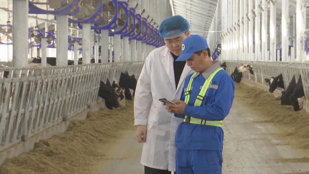 在昌吉市现代畜牧产业园,现代牧业(昌吉)有限公司的饲养人员使用智能饲喂管理系统,对饲养、挤奶、繁殖等数据进行监控,从而进行优化,让管理更加精准化。饲养员胡雅宁说:“现在饲喂组共4人,负责管理3100头牛的饲喂,工作效能得到很大的提升。”