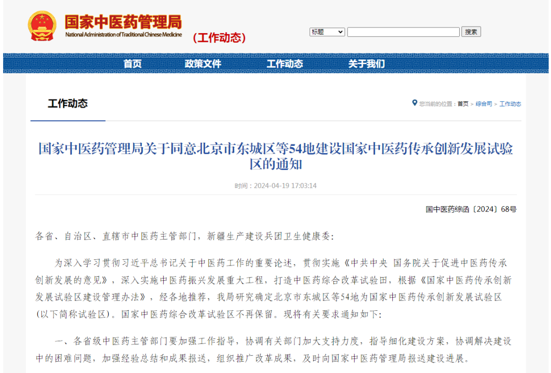 国家中医药管理局网站截图