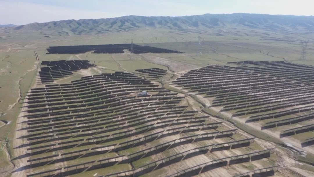 新疆中晖协创电力设计咨询有限公司EPC项目经理张国庆说:“变电站建完和线路工程建完之后,光伏就通过这个变电站和线路,把这相关的这个光伏发电,通过这个变电站和线路外线送出去,给咱们国网系统上网发电。”