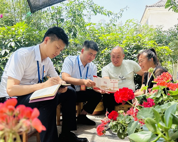 河南省舞钢市纪委监委系统梳理涉农资金补贴发放、集体资源征占补偿、集体资产经营处置及项目建设管理等方面存在的共同问题,提出针对性整改建议,推动规范“三资”管理。图为该市纪检监察干部在听取群众对村级“三资”管理的意见建议。朱莞尔 摄