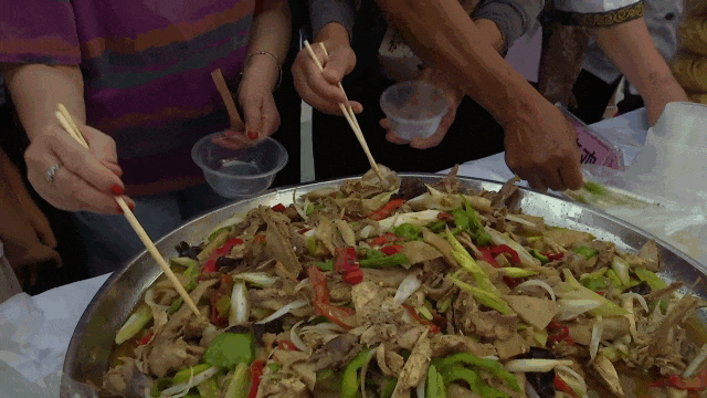 在食必吃名宴展现场,众多昌吉知名餐饮企业将上百道昌吉特色美食摆放成百米长桌宴,供游客免费品鉴,让大家尽享昌吉人民的热情好客与昌吉美食的独特风味。活动现场还有专业文艺团队表演舞蹈、歌曲、戏曲等特色文艺节目,吸引了大批市民和游客前来品美食、赏歌舞,烟火气十足。