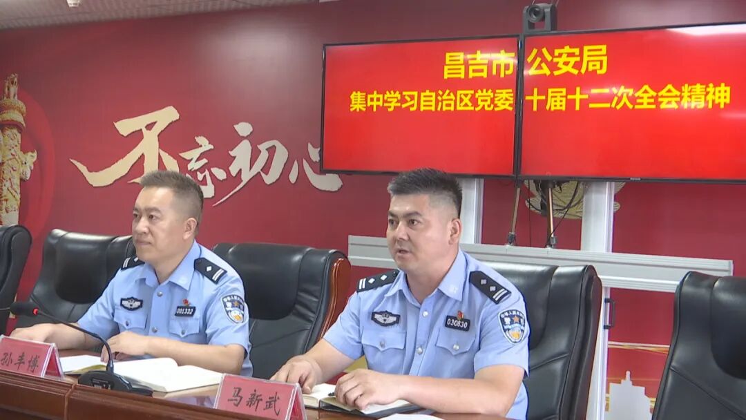 “我们要带头学习贯彻自治区党委十届十二次全会精神,紧密结合公安工作和公安改革实际,深入思考落实,带领广大公安干警不断把学习成果转化为做好新时代公安工作的生动实践,聚焦主责主业,强化队伍管理,严厉打击违法犯罪,全面从严管党治警,把维护国家安全、维护社会稳定、保障人民安宁贯穿到公安工作的各方面全过程,以实际行动维护人民群众生命财产安全,全力确保辖区社会大局持续长期稳定。”昌吉市公安局党委委员副局长孙丰博说。