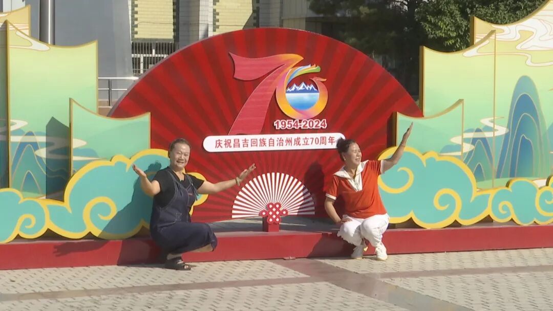 在亚心广场,州庆景观造型融入了象征昌吉州成立70周年的数字“70”以及象征着昌盛吉祥的祥云造型,营造出“昌盛吉祥”的喜庆氛围。市民们纷纷相约利用闲暇时间前来打卡拍照,表达出对家乡的热爱和祝福。“听说亚心广场设立了打卡点,我们也想学现在的年轻人,来到这里打卡。这里的打卡点真的很漂亮,造型非常独特,颜色也非常鲜艳,我们还有几个朋友,也要到这里来打卡,拍出美丽的照片。”市民付杏说。