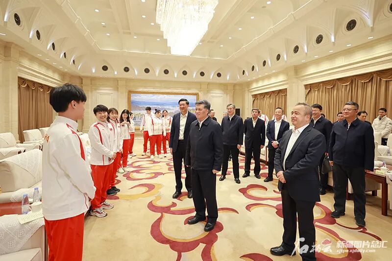 11月25日,“决胜巴黎·绽放奥运——奥运冠军面对面”巡回宣讲活动首站来到新疆。自治区党委书记、兵团党委第一书记、第一政委马兴瑞,自治区党委副书记、自治区主席艾尔肯·吐尼亚孜当天下午在乌鲁木齐会见了国家体育总局党组书记、局长高志丹和奥运健儿代表。