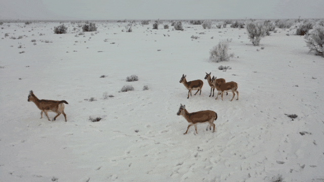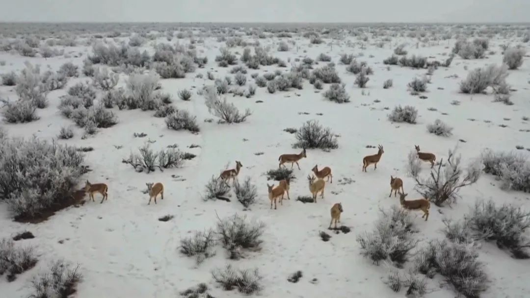 记者随市林业和草原局工作人员在北部荒漠巡护时发现,在成片的梭梭林和红柳之间,鹅喉羚或三五成群、或十几只一群,在雪地里时而驻足凝望,时而觅食,时而嬉戏奔跑,其矫健轻盈的身姿,为这片荒漠增添了勃勃生机。
