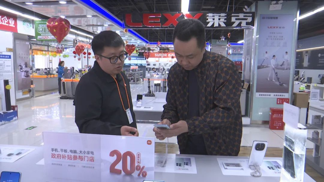 在中联电器昌吉广场店的小米体验店,前来选购手机、智能手环、智能手表的顾客络绎不绝,市民吕文涛在导购的介绍下,挑选了一款心宜的手机。“现在国家补贴政策力度挺大的,买一部手机可以省好几百元钱。”市民吕文涛说。