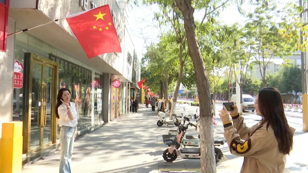 商户安元生说:“国旗飘扬着,不仅顾客看着舒心,我们做生意也更有干劲了。这既是对祖国的祝福,也是对咱们美好生活的期盼。”