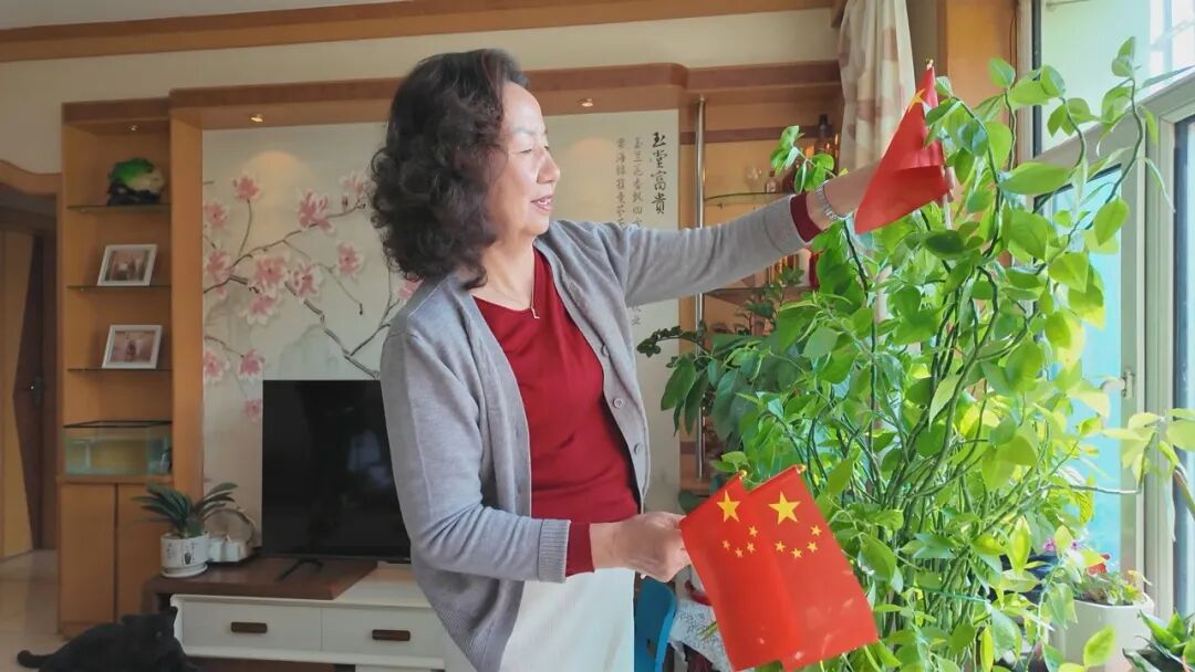 退休干部张海棠动情地说:“过去真是想都不敢想,能过上像今天这样红红火火的好日子,现在住得舒心、吃得安心,看着这一面面迎风飘扬的国旗,就感觉生活特别有奔头,心里真的是既踏实又暖和!”