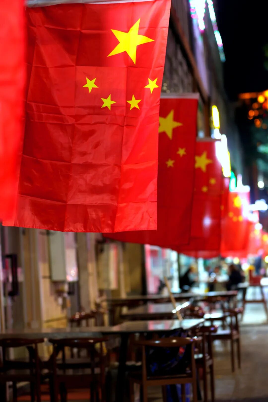 一面面鲜红的五星红旗迎风招展