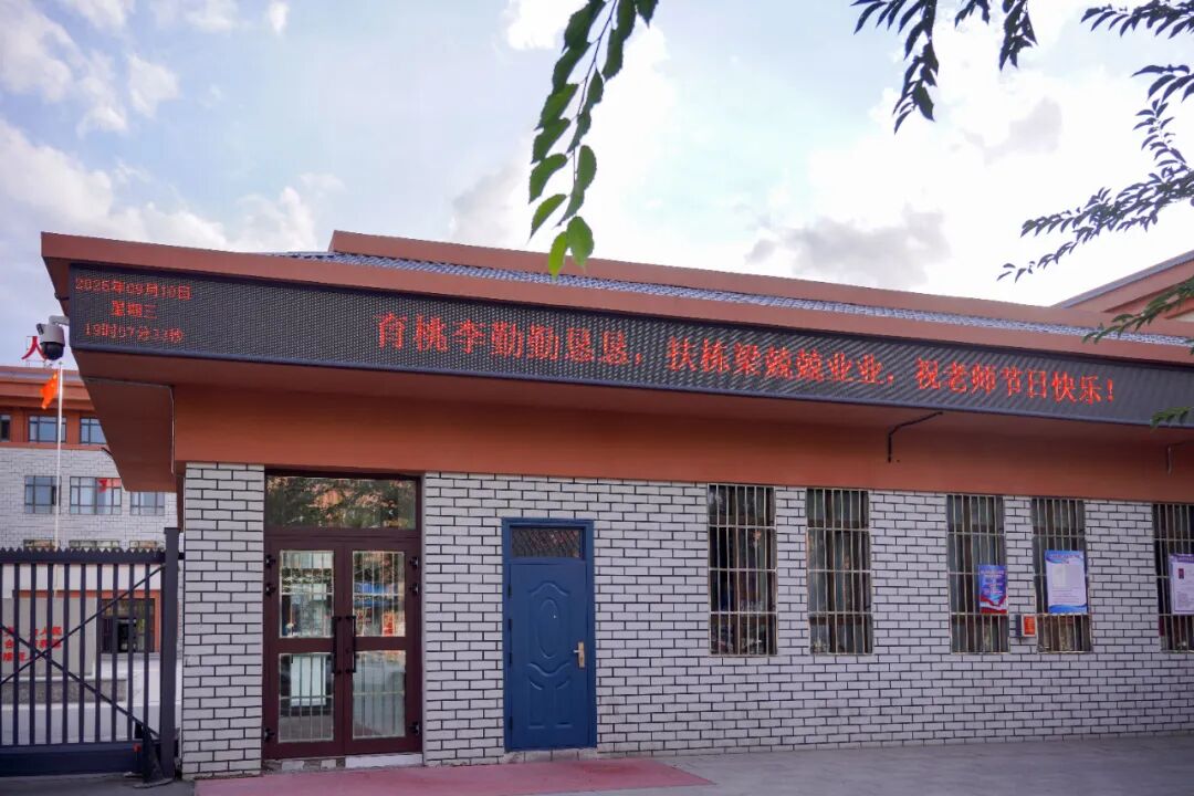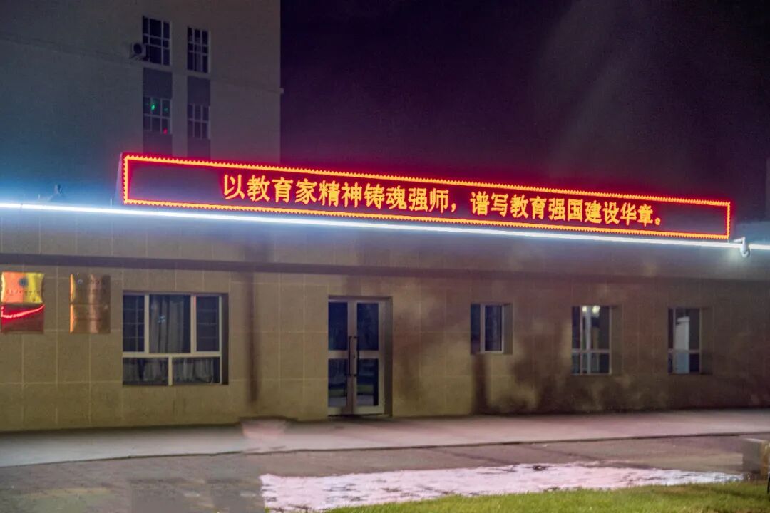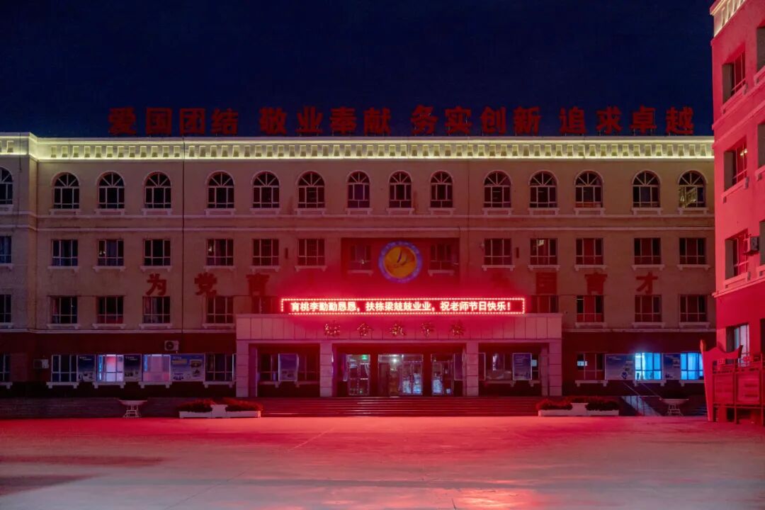 ▲昌吉市第五中学LED屏上播放教师节祝福语。(杨斌摄)