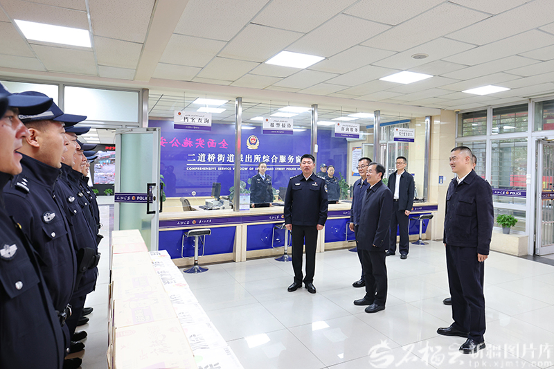 10月5日,自治区党委书记、兵团党委第一书记、第一政委陈小江在乌鲁木齐市公安局二道桥街道派出所,看望慰问基层政法干警,向节日期间坚守岗位的一线干部职工致以亲切问候。天山网-新疆日报记者 崔志坚 摄