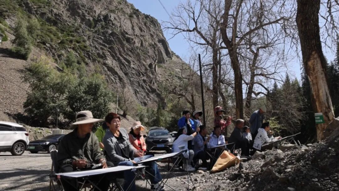在庙尔沟乡山区,油画家们支起画板,凝神捕捉着光影在山石与林木间跃动的光斑。他们借助画笔与画刀,将山石的厚重与林木的灵动尽收画布,创作出一幅幅质感浑厚、情感充沛的油画作品。