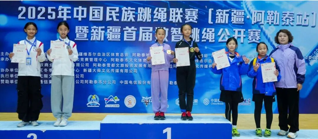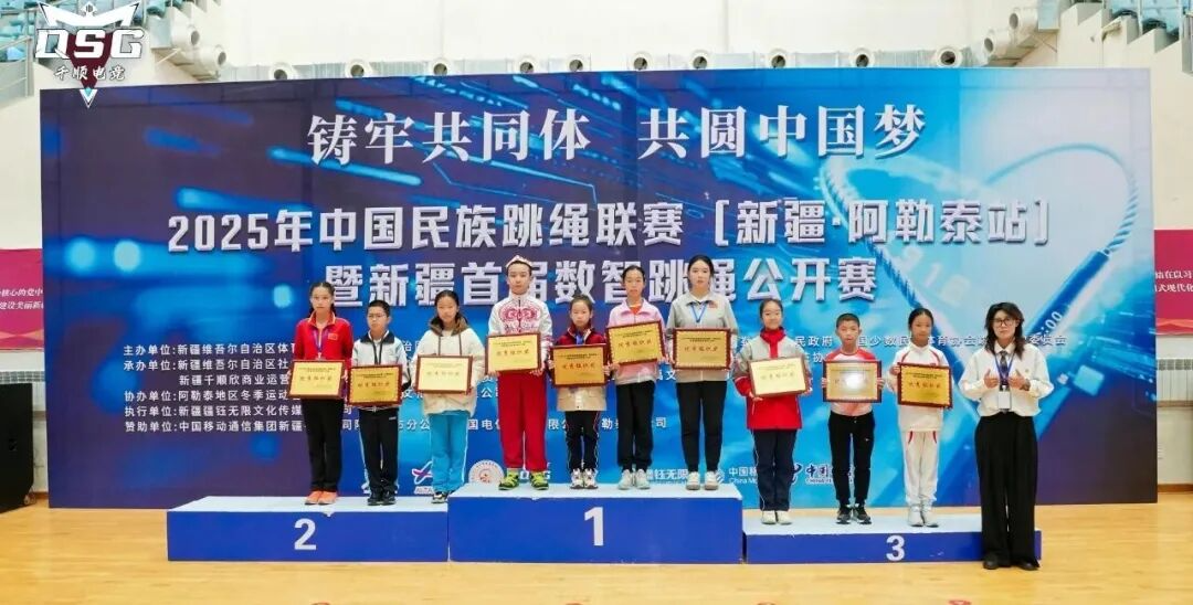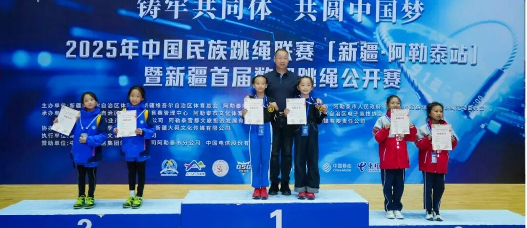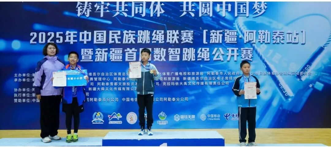 近日,2025年中国民族跳绳联赛(新疆·阿勒泰站)暨新疆首届数智跳绳公开赛在阿勒泰地区体育馆圆满落幕。昌吉市第十小学选派25名运动员奔赴赛场,与众多高手同场竞技,最终凭借扎实的训练功底、默契的团队配合与顽强的拼搏精神,在本次赛事中取得4枚金牌、15枚银牌和10枚铜牌的优异成绩,其中在新疆民族跳绳操规定推广套路项目中更是力压群雄,荣获第1名,为学校、为昌吉市赢得了荣光。