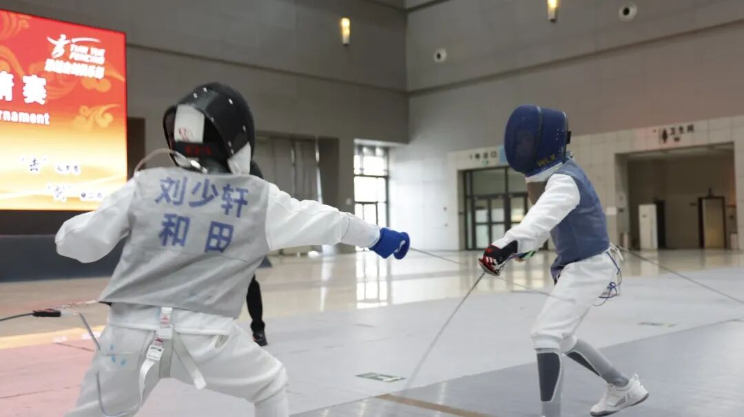 赛场上,身着击剑服的少年选手们斗志昂扬。他们或主动进攻,或灵活退守,在进退交锋中展现出击剑运动的优雅风度与竞技魅力。