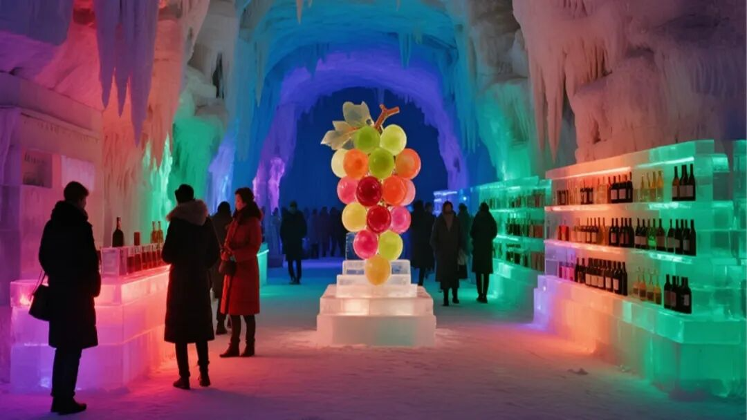 冰雕师褚克峰说:“我们是从哈尔滨来的冰雕团队,这次创作的作品包括传统的‘二龙戏珠’,也结合今年马年主题,制作了五匹马的造型。此外,还用彩色冰雕还原了新疆特色的哈密瓜、葡萄等水果形象,希望能让昌吉市民感受到冰雕艺术的魅力。”