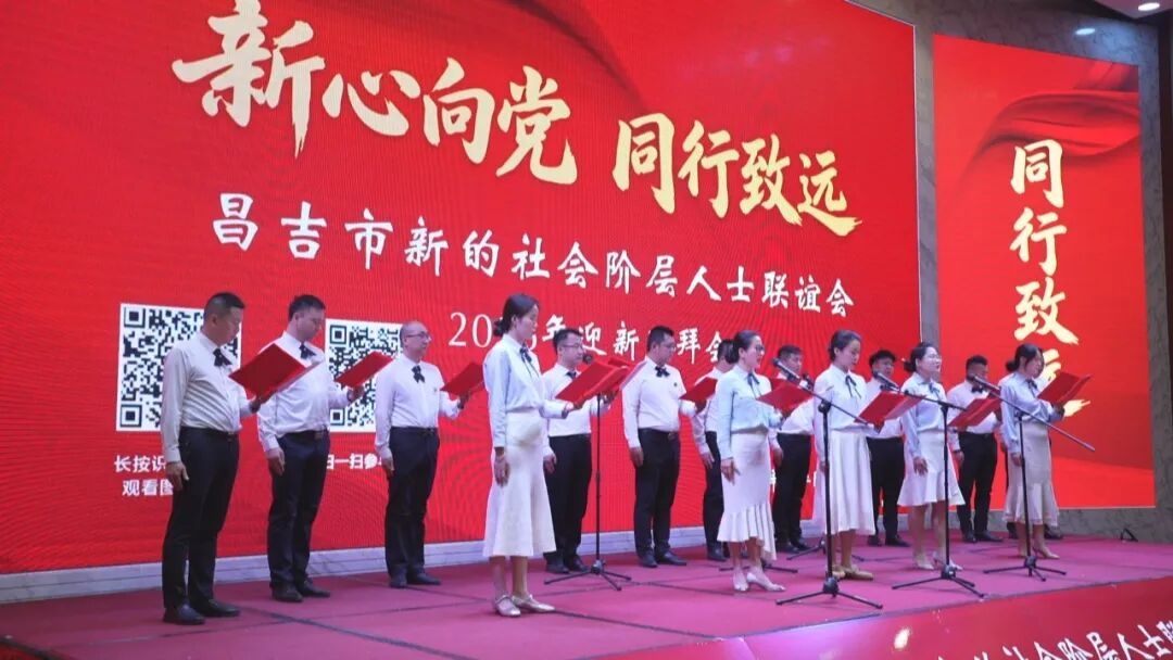 昌吉市新的社会阶层人士联谊会2026年迎新团拜会在园林宾馆举行,来自全市各领域的新阶层人士齐聚一堂,以“新心向党·同行致远”为主题,共叙情谊、共话发展,共同描绘助力昌吉高质量发展的崭新蓝图。会上回顾了一年来新联会的工作成效,并展望了未来发展方向,随后放映了展现新阶层人士在创新创业、社会服务等领域的宣传片,颁发了“凝心聚力奖”“同心协力奖”等多个奖项,现场还表演了歌曲、快板、独舞等文艺节目,共贺新年。记者 王博