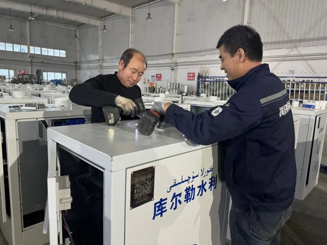 近日,在新疆禹拓物联科技有限公司厂房,工人们正在组装自主研发的井电双控设备。这批3000套设备将发往库尔勒市,用于地下水精准计量,助力农业科学灌溉与春季用水保障。