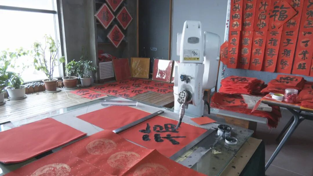 新疆三力智能科技有限公司是一家从事工业机器人集成应用的科技型公司。这几天,该企业文创基地里,AI智能书法机器人正书写对联、福字等文创作品,这批订单将发往北京、杭州,共计5000余套。2025年,该公司投资100多万元建设了机器人文创基地,推动“机器人+柔性应用”跨界发展,年产值200余万元。