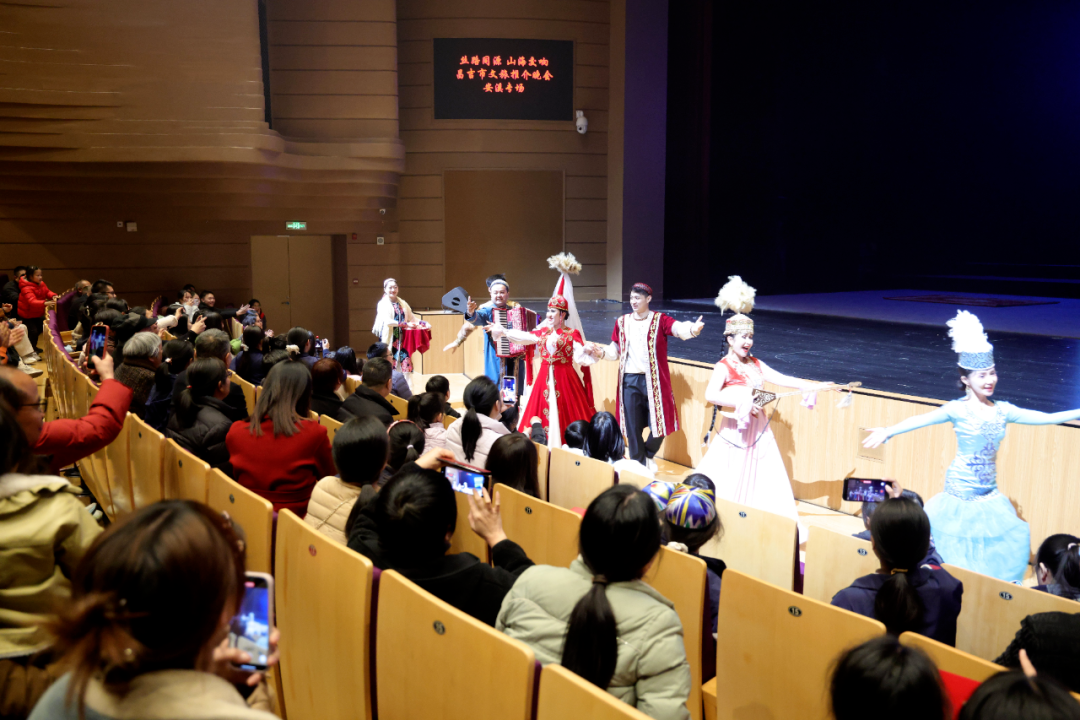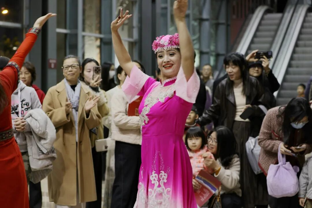 每一场演出启幕前,剧场入口的主题展板前早已人头攒动、暖意涌动。市民们纷纷举着手机与“昌吉名片”定格瞬间,孩子们踮起脚尖,好奇地打量着文旅推介专区的特色好物,追着工作人员探寻远方的故事,空气中仿佛漫溢着天山草原的清冽与昌吉馕饼的醇厚香气。这份发自内心的期待,无关刻意引导,恰似冬日暖阳,轻轻驱散了远道而来的昌吉艺术团成员们的旅途疲惫,让跨越山海的相聚满是温情。
